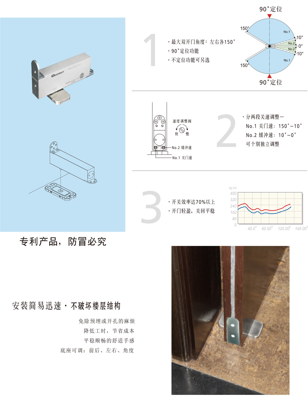 •通过欧洲标准CE安全及防火认证 •通过美国UL安全认证 •功能超越传统地弹簧 •荣获40余国世界发明专利