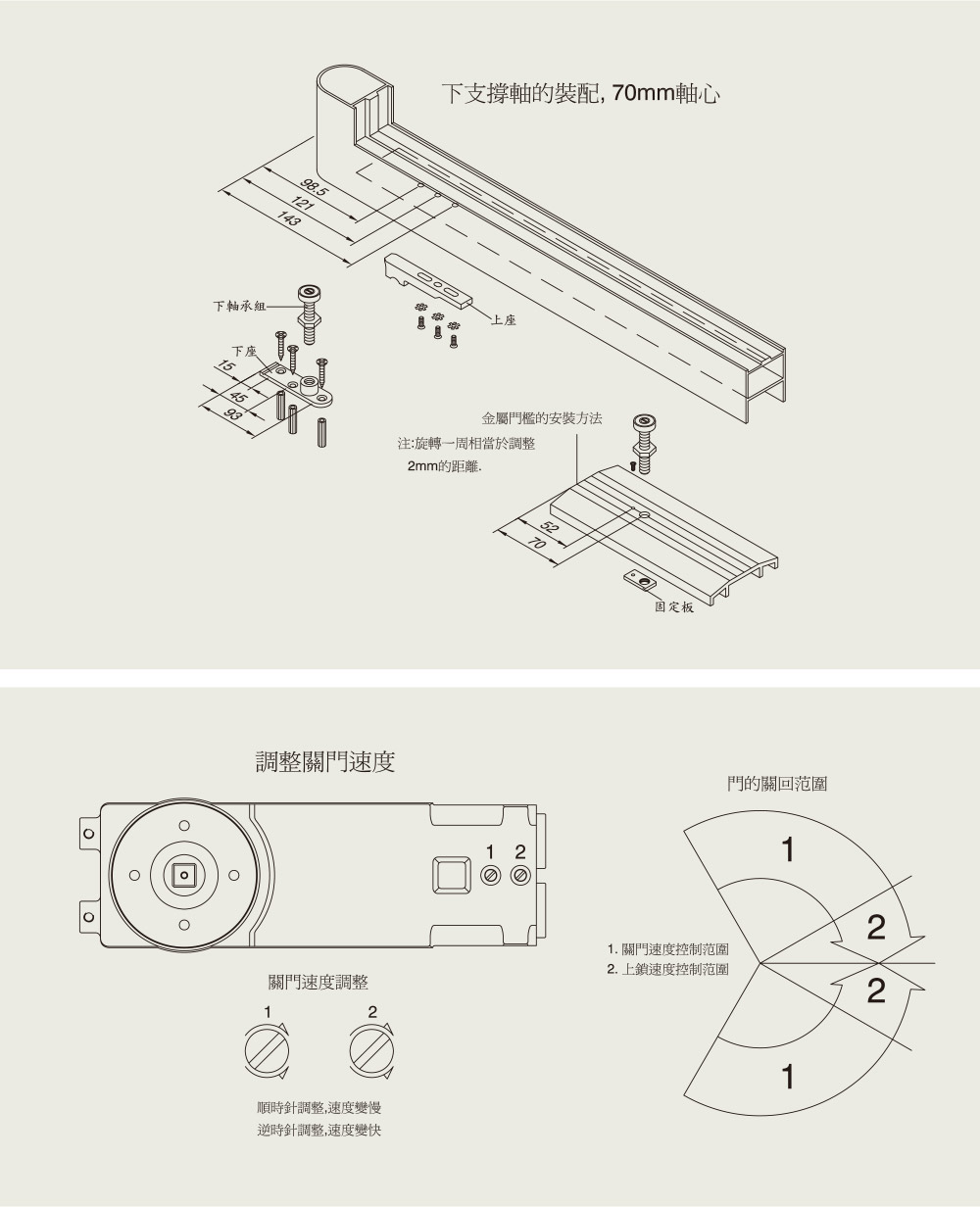 • 符合欧洲CE安全及防火标准 • 安装于铝门之上框架处 • 适用最大门宽:1250mm