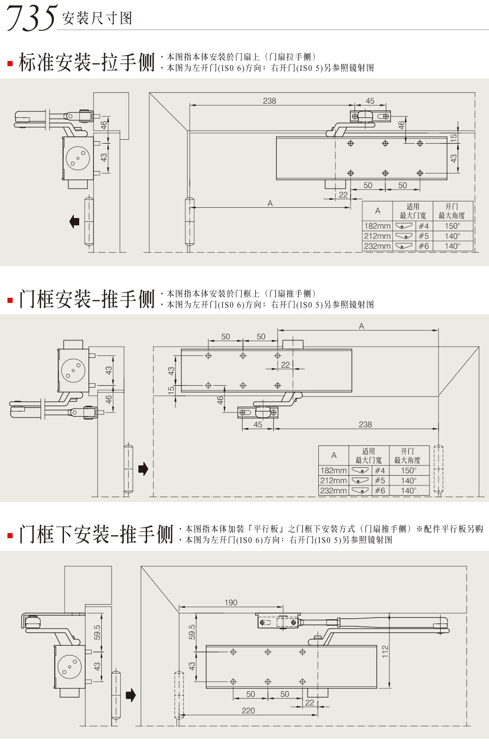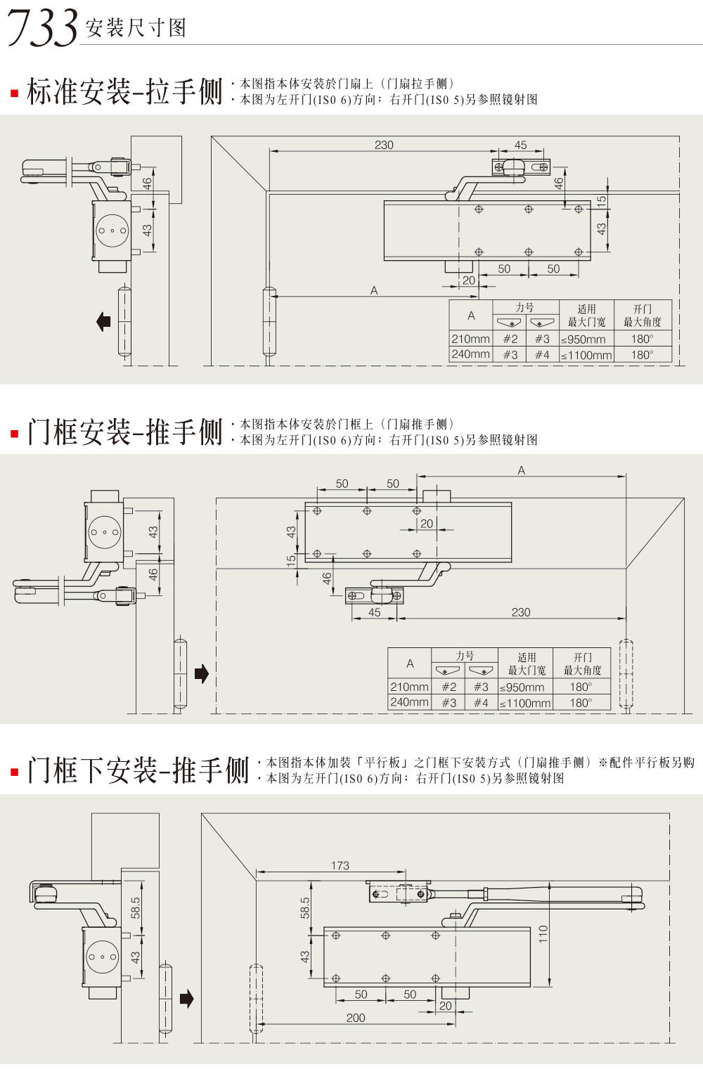 • 通过欧洲标准CE安全及防火测试认证 • 同一机体位移,可分三种力量;特别适用于防火门、逃生门、公共空间门 • 733适用门宽:850~11000mm • 735适用门宽:1100~1450mm • 可适应于零下30°低温环境
