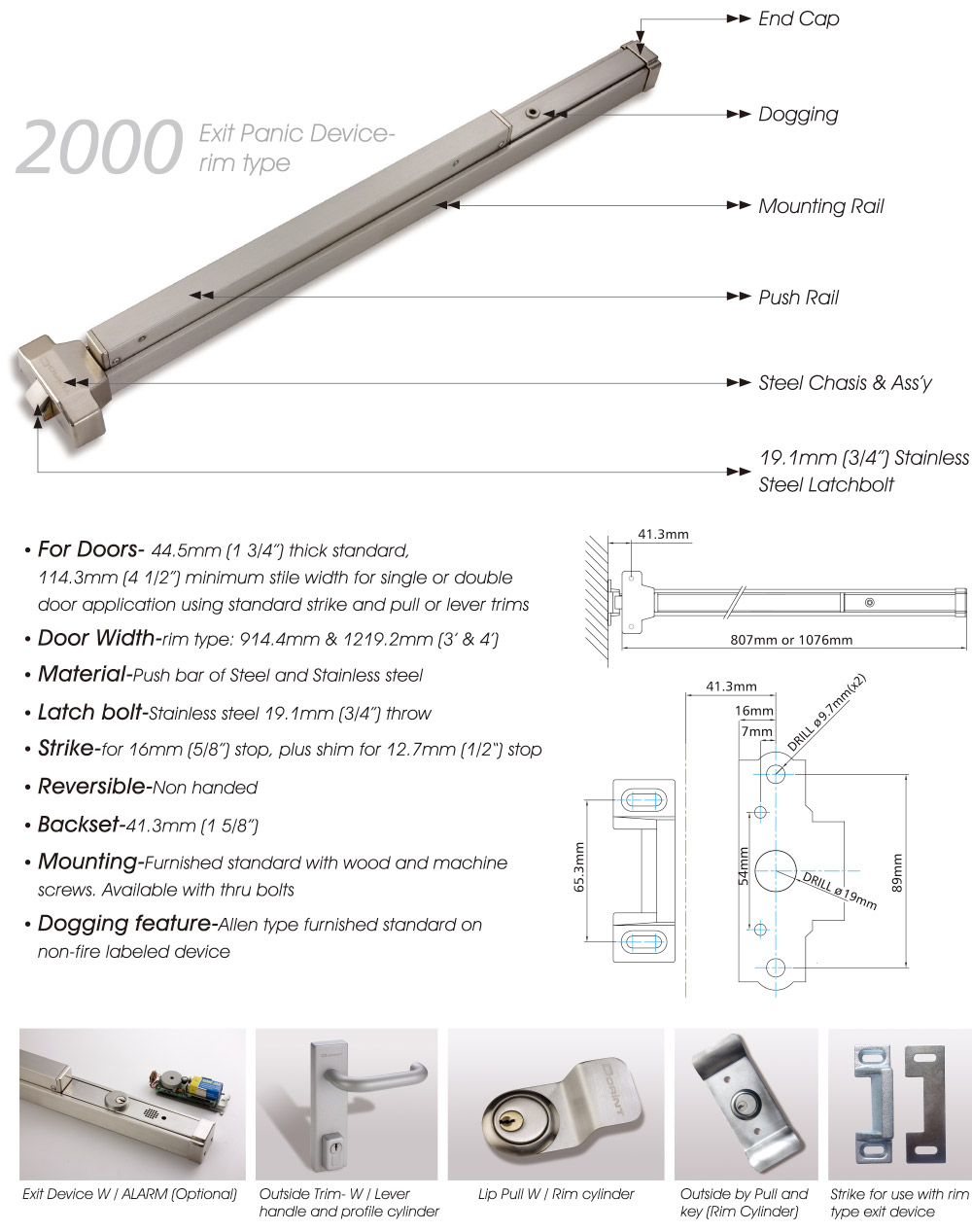 Dorint紧急逃生门锁的特质 紧急逃生门锁是利用手或身体,压其推杆,以使紧急逃生者(包含受伤的、老弱的人…等能由室内轻易推开紧急逃生门锁,而不需要任何钥匙;即使室外防盗锁处於上锁状态,也不能影响紧急状况时欲由室内轻易快速打开门的要求!