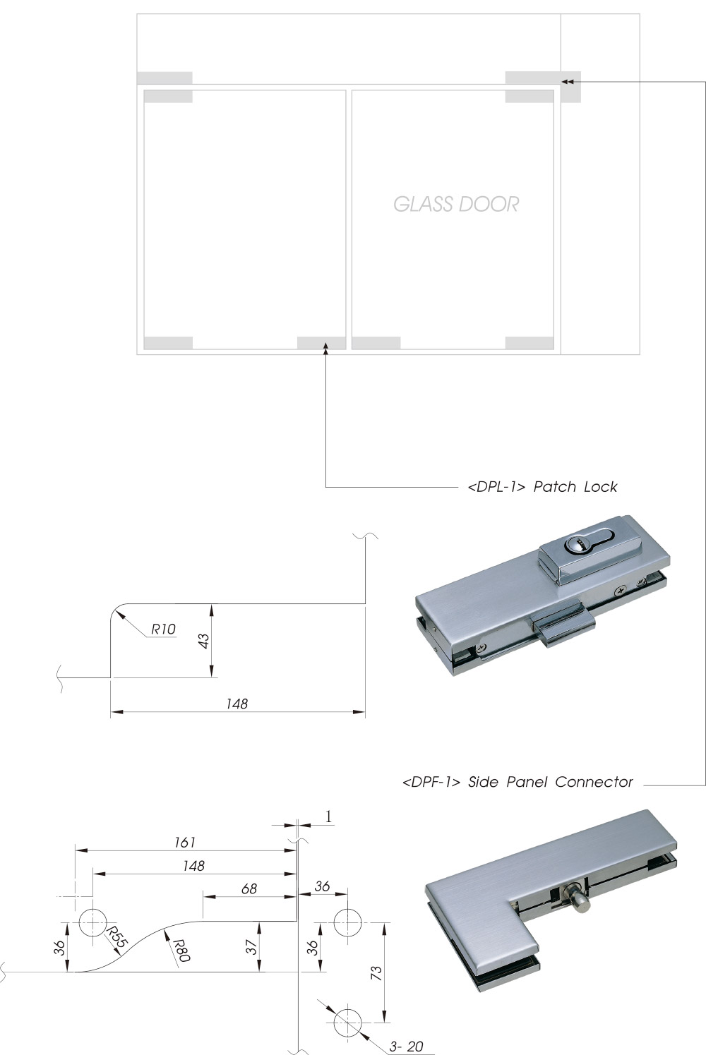 • Home > Products > Glass Fittings > Side Panel Connector > DPF-1