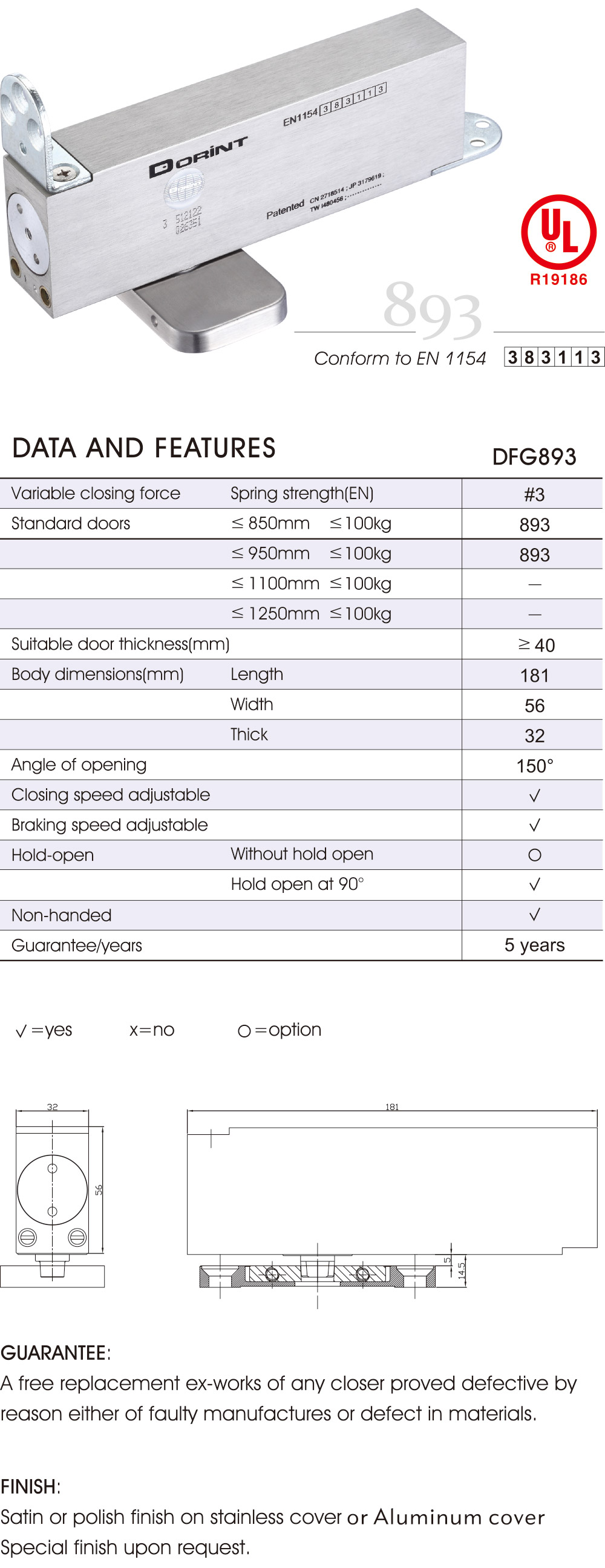 • DFG890 Series Concealed Floor Spring