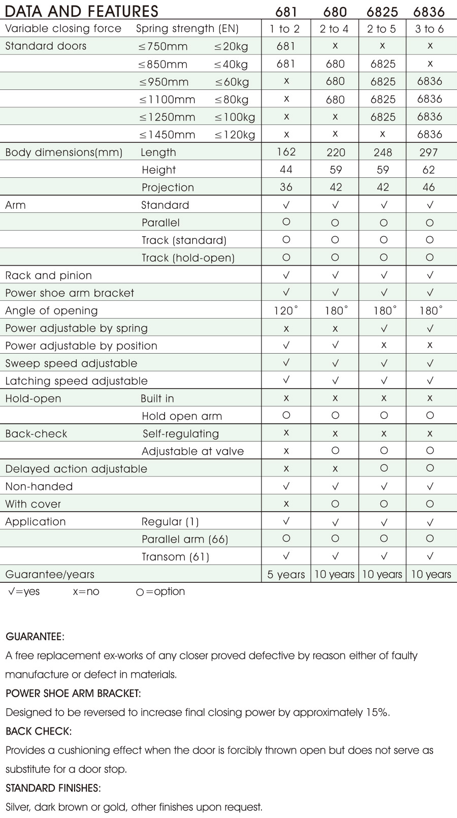 Tested to EN 1154 by Warrington APT Laboratoris, UK Power Adjustable #2 to #4 by Position / by Springs EN Fire Tested